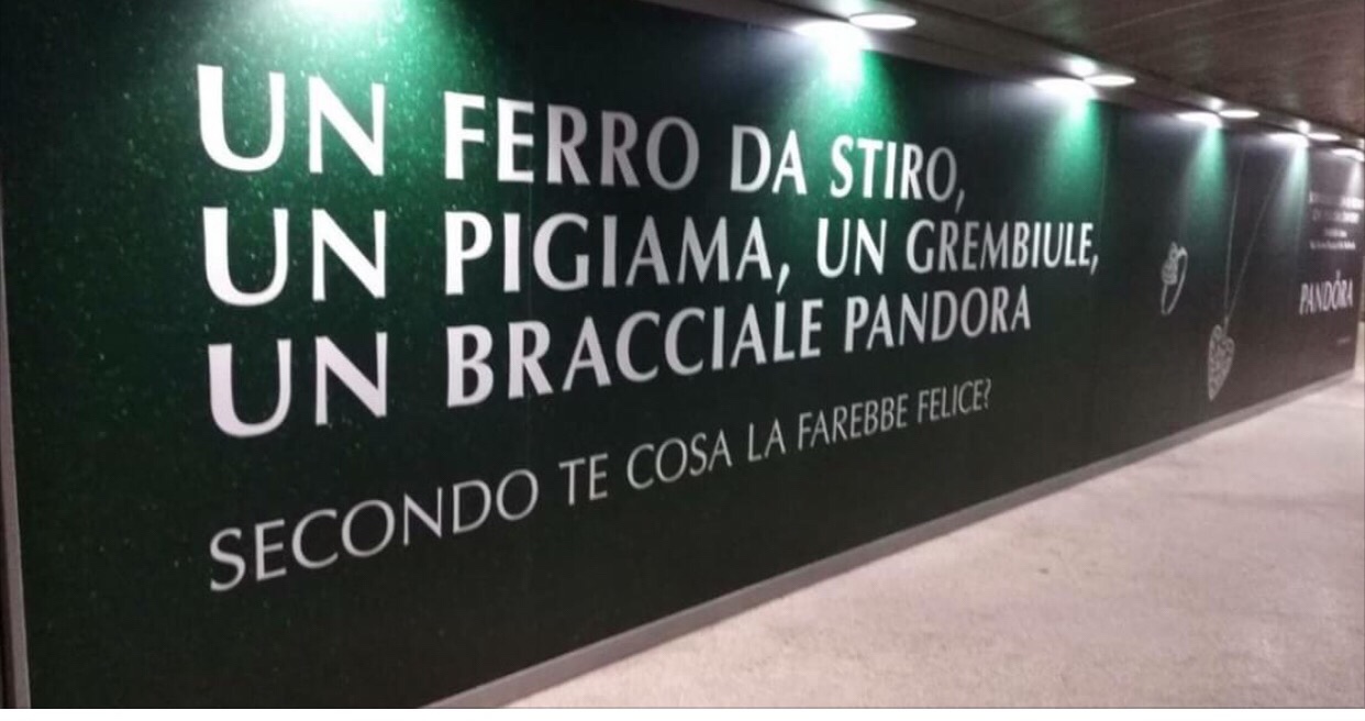 E coinvolge un noto marchio di gioielli: Pandora. [messaggio promozionale: CHIEDETE CONSULENZA A STRATEGY PRIMA DI LANCIARE CAMPAGNE ALLUCINANTI, SANTIDDIO — qui tutte le info, numeri di telefono, mail e coordinate geografiche per beccarci. Prima di tappezzare l’Italia con oscenità, possibilmente. Grazie.]